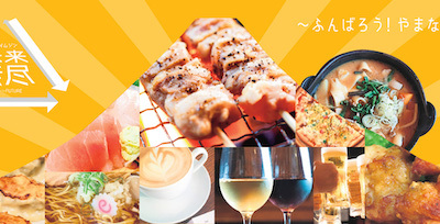 まず概要を説明します。山梨県内の飲食店で使えるクーポンをサイトで申し込み、メールで送られてきたクーポンをプリントアウトして利用店に直接クーポン代金を支払います。ご利用時に基本的には25%の上乗せサービスがつくのですが、エリソンのある甲州市にあるお店はさらに5%(計30%)の上乗せになります。山梨県にお住まいの人もでもそうでない人もご利用可能です!