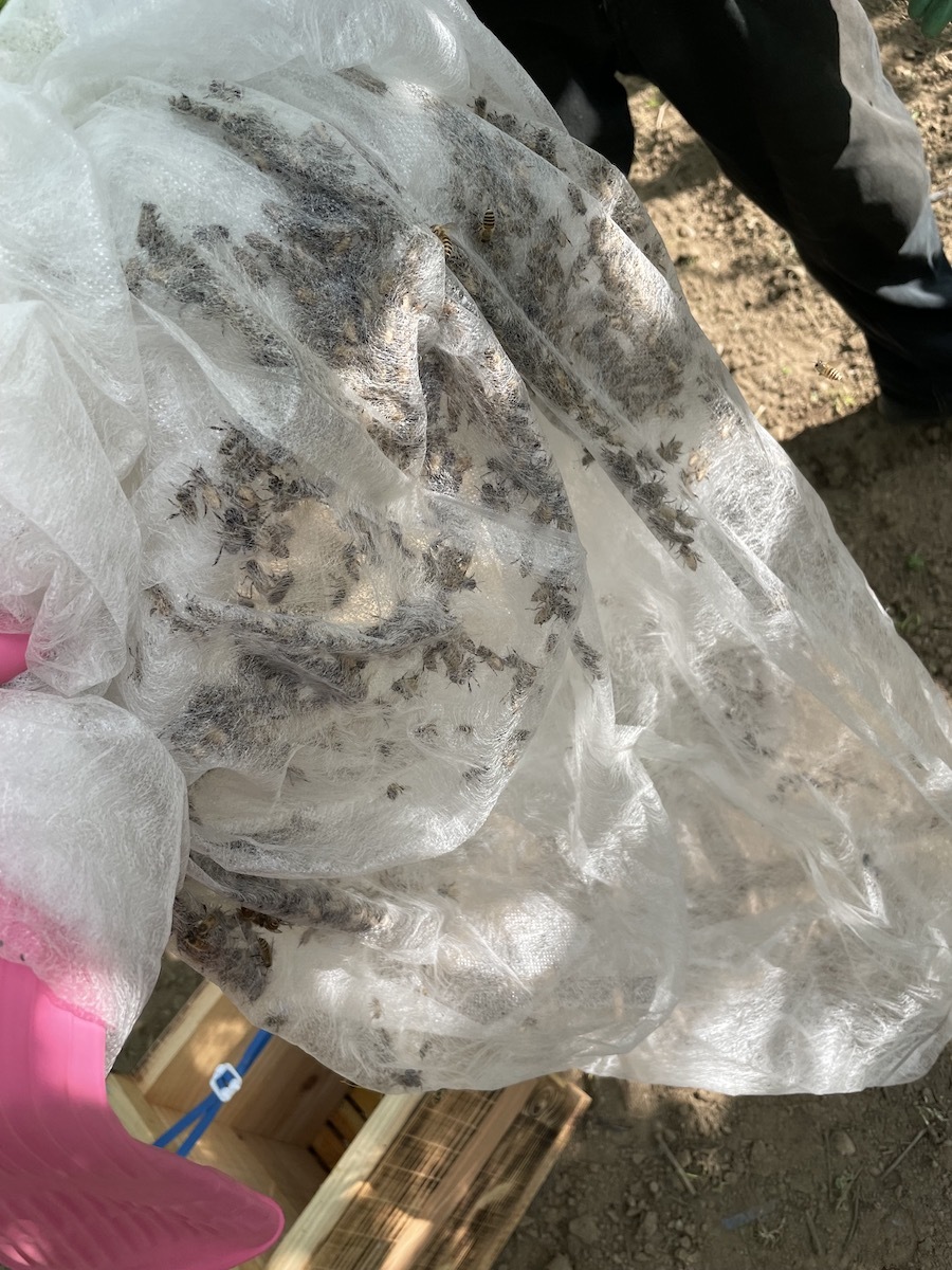 なんせ初めての経験なので思った通りにはなかなか行かないですが用意した袋になんとかみつばちを入れました。
