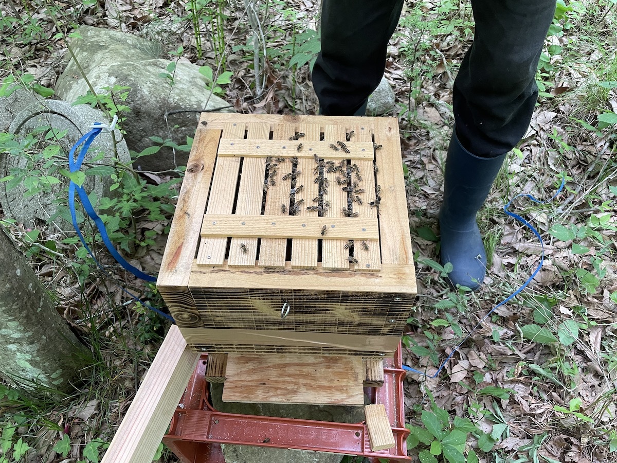 先日、初めて捕獲に成功した日本みつばちですが、あれから二週間が経ちどうなったかご紹介します。