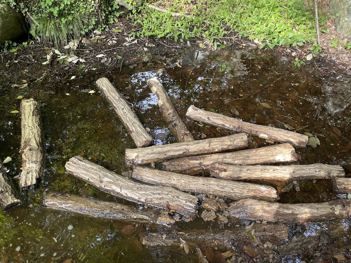 秋口にやることと言えば、自家菜園の原木しいたけのホダ木の作業です。ホダ木を24時間ほど水に浸けて並べ直すという作業をします。そうするとホダ木からしいたけがニョキニョキと発生し始めるという塩梅なんです。たくさんのホダ木がある場合は時期を変えて水に浸けることで発生時期をずらすことが出来ます。