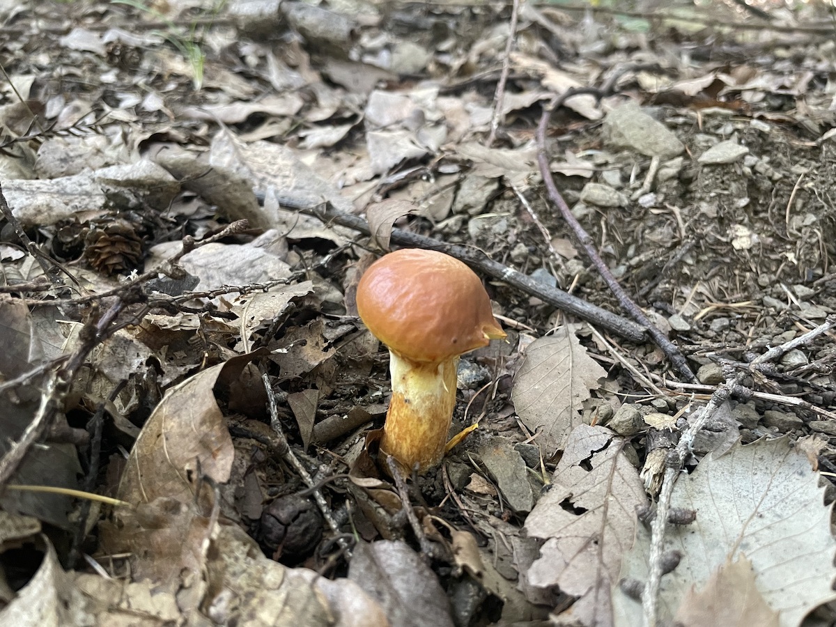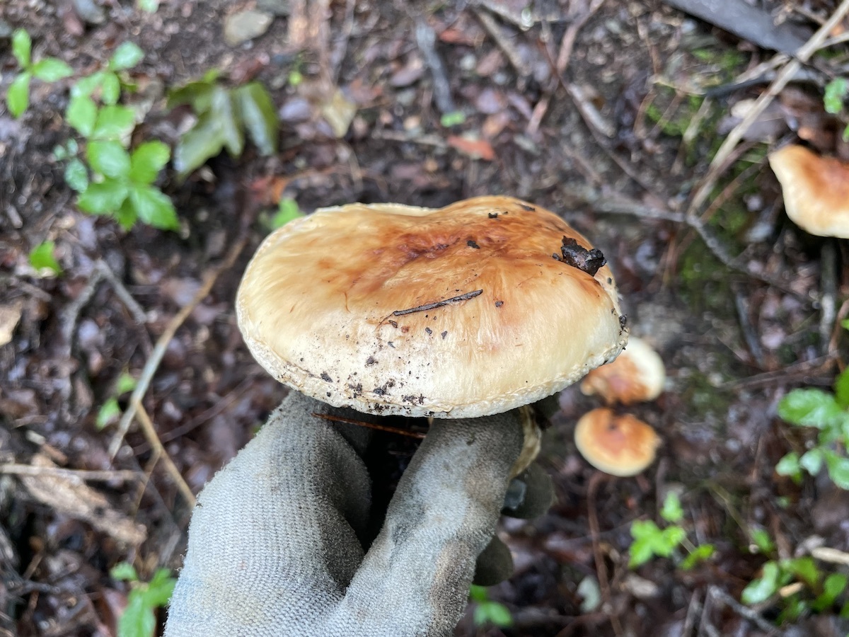 比較的、終盤に出てくる「ハナイグチ」の幼菌も見つけました。これからがシーズンなのでいっぱい採れるといいなあ。