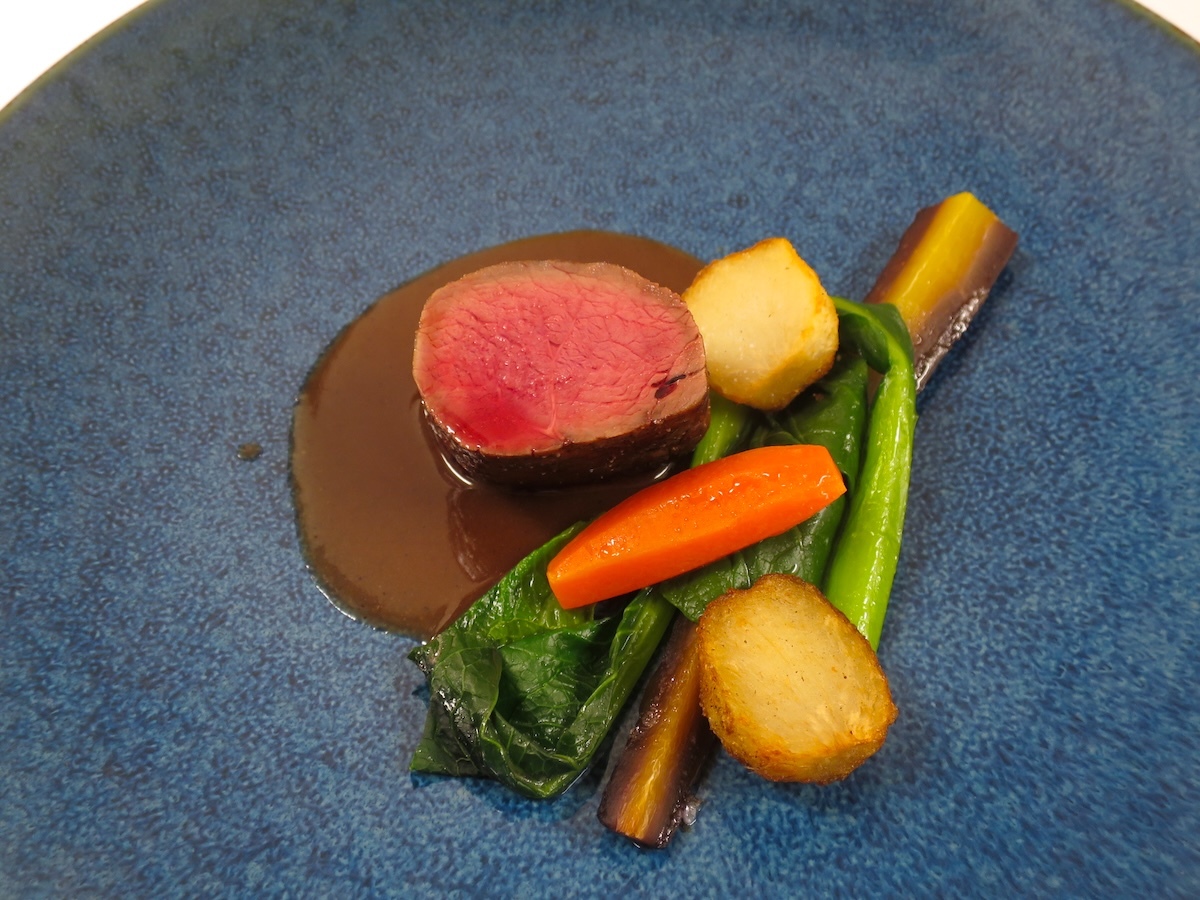 鹿の背肉のロースト。繊細な赤身を丁寧に火入れして。