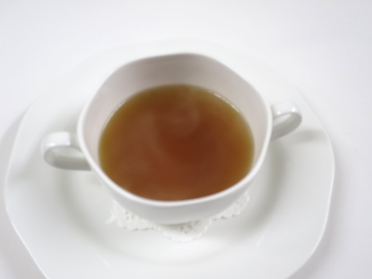 ジビエのコンソメスープ。鹿や野禽類を数種類使ったコンソメスープ。なんとも言えない滋味があります。
