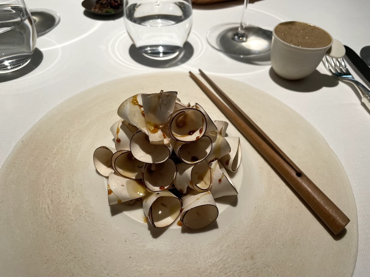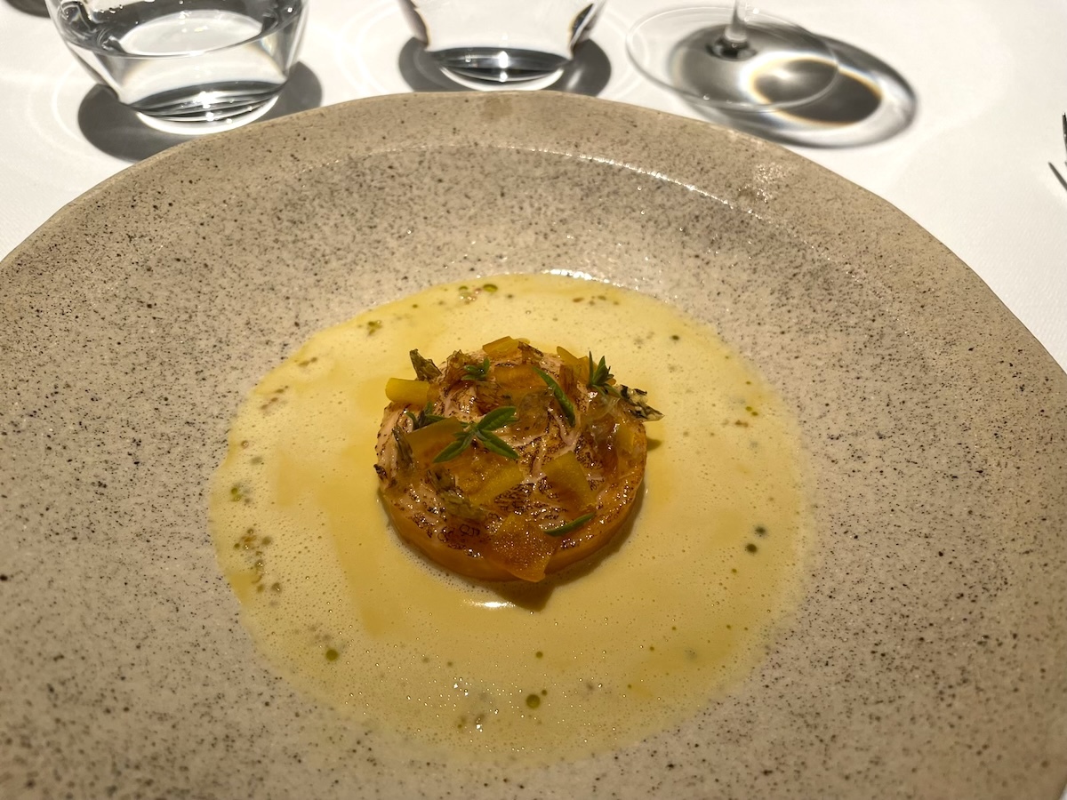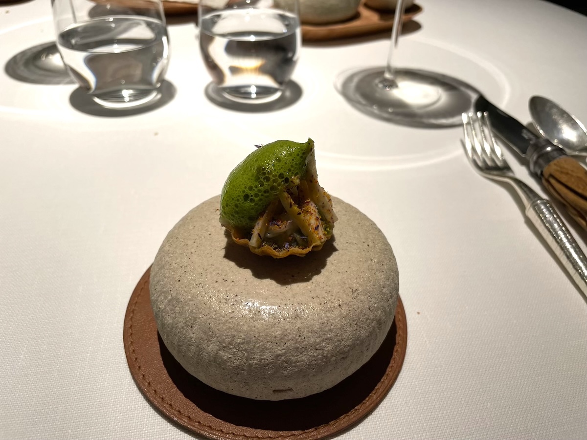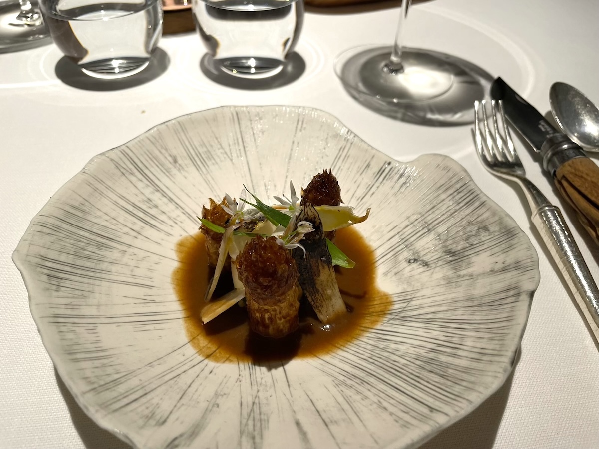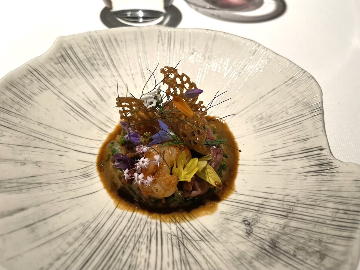 「Ecrevisse du lac, abattis de volaille」フランスでは高級食材のザリガニ料理。鶏の内蔵の濃厚なソースで。