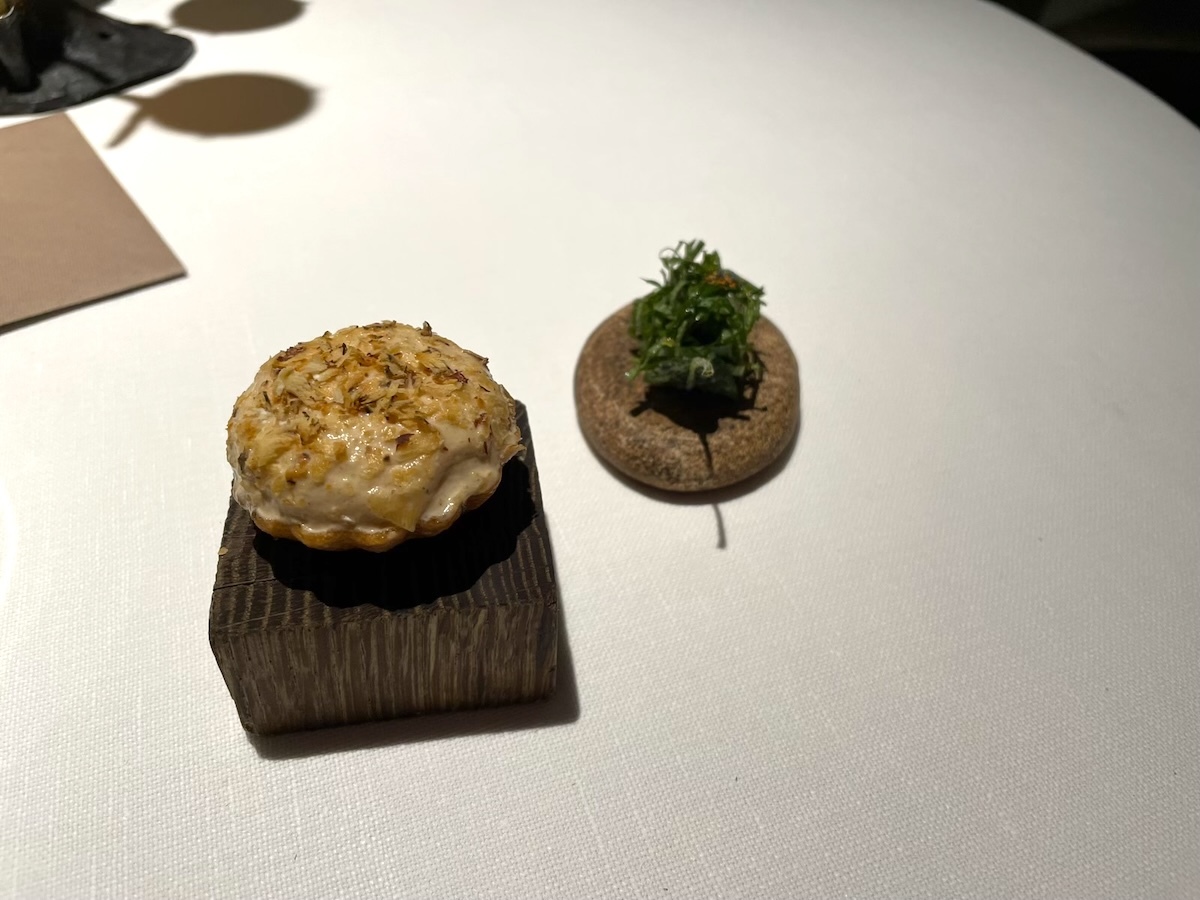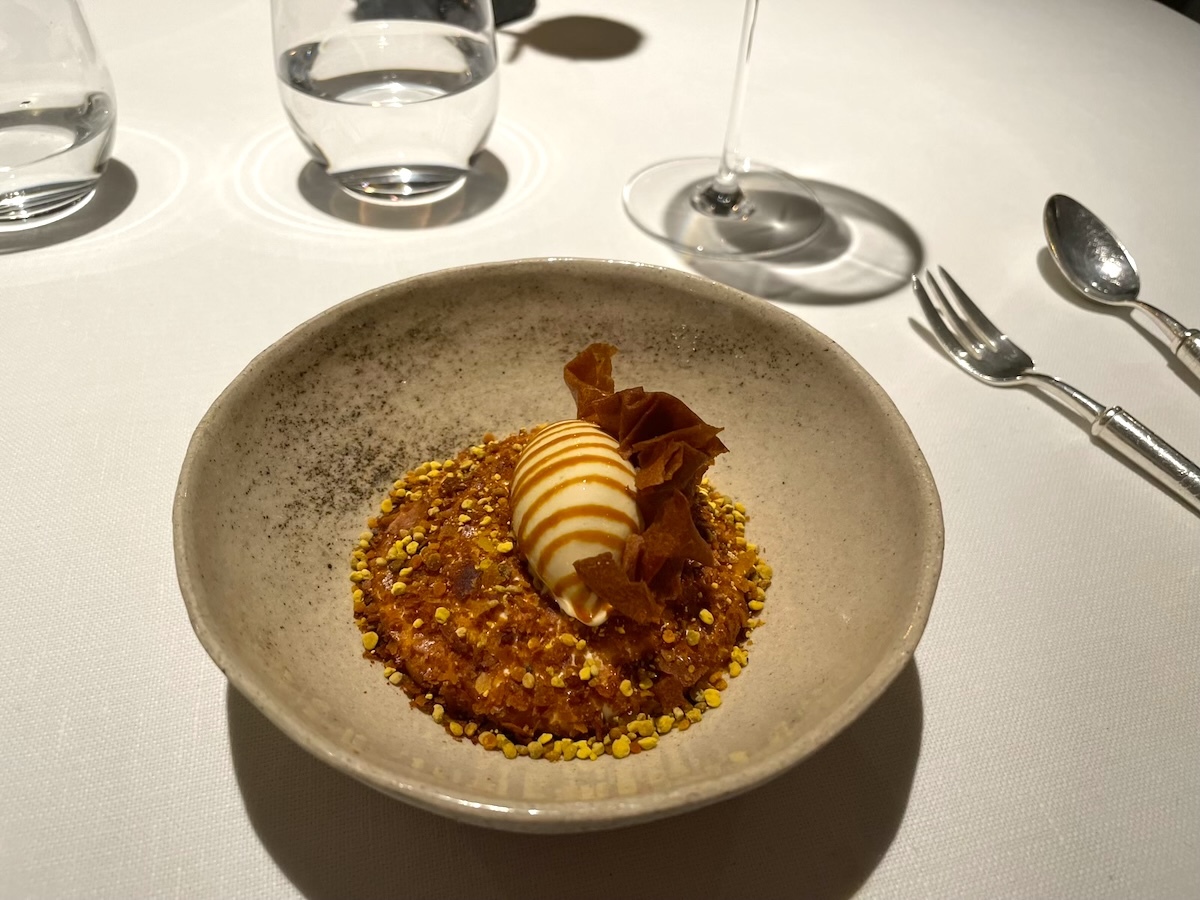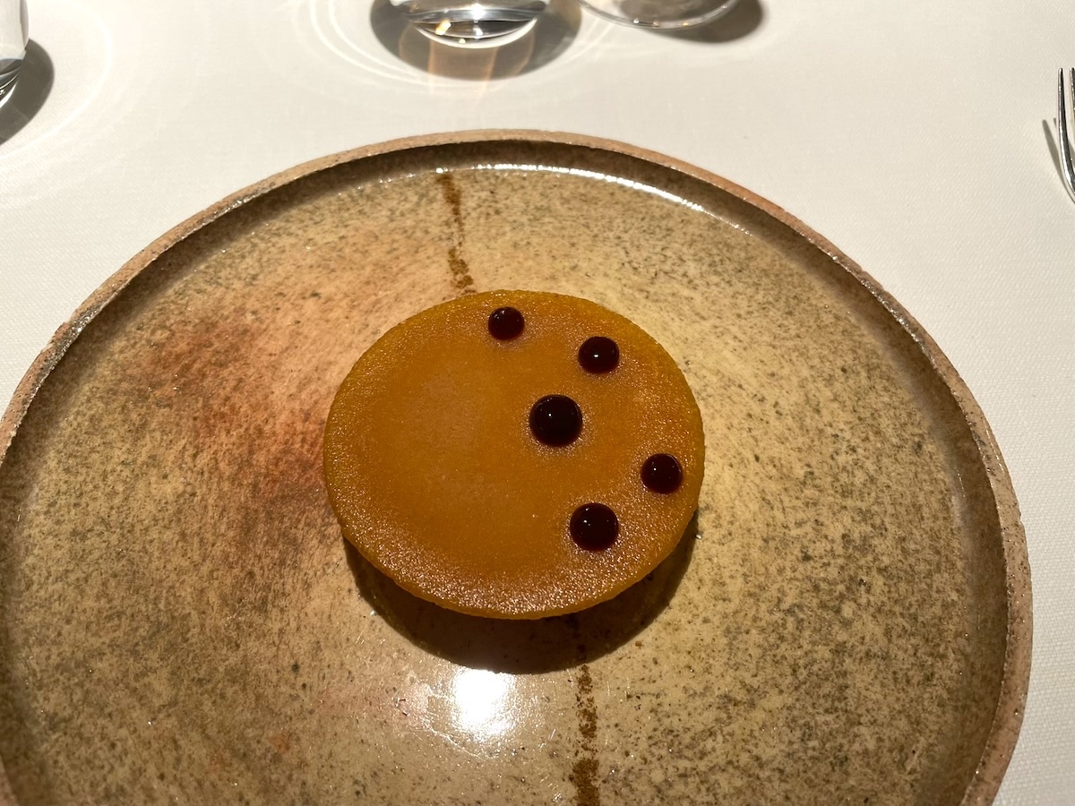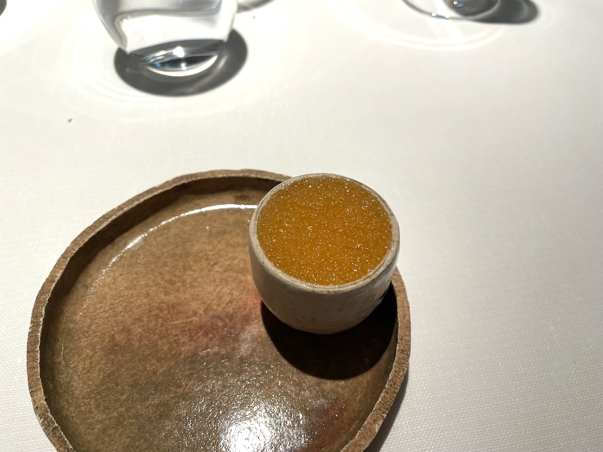 「Polenta crémeuse, œufs de brochet」カワカマスの生の卵、下には柔らかいポレンタ