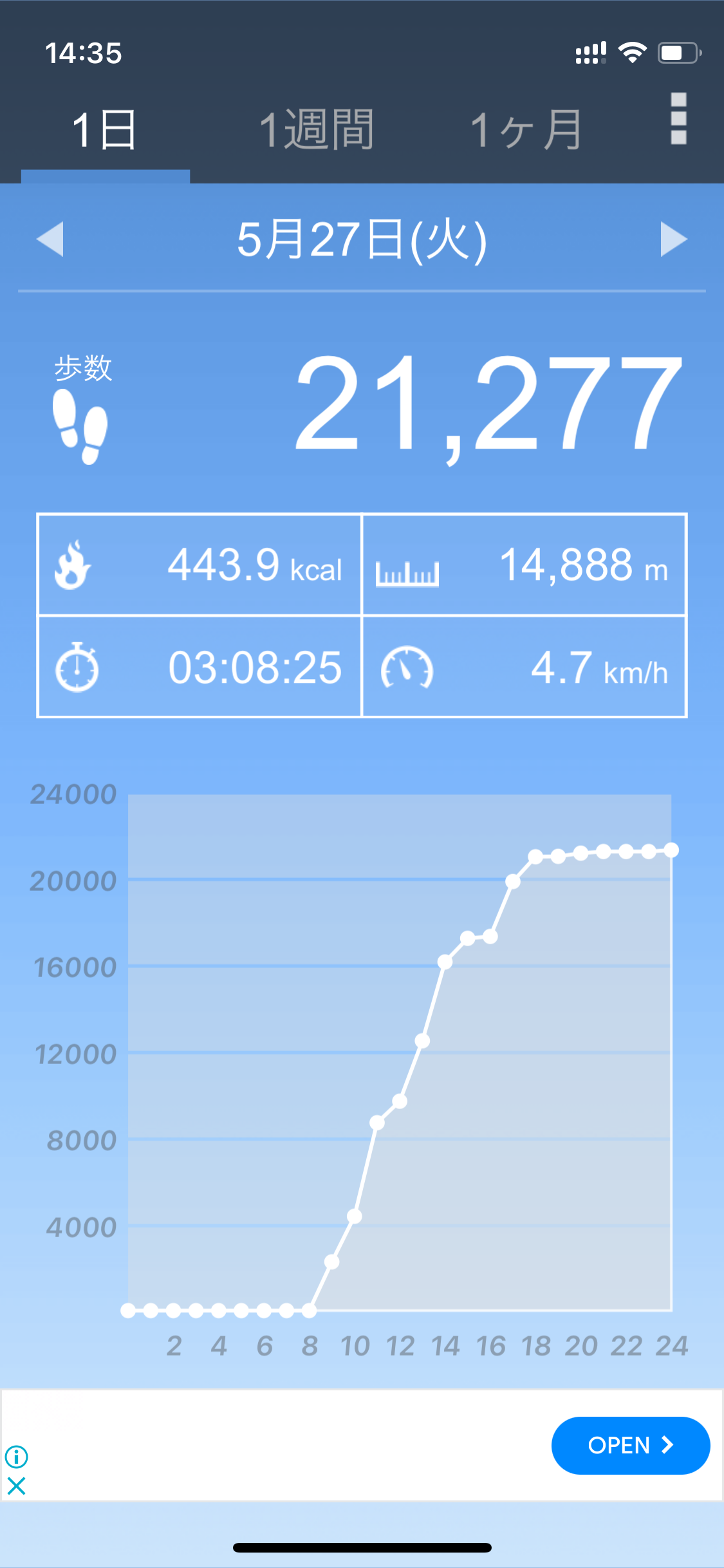 本日の歩数。朝市とアヌシーの散策で結構歩いたね。