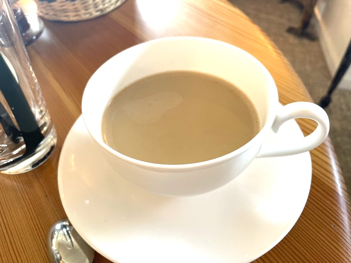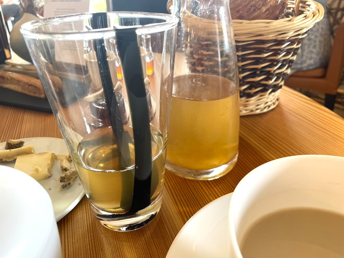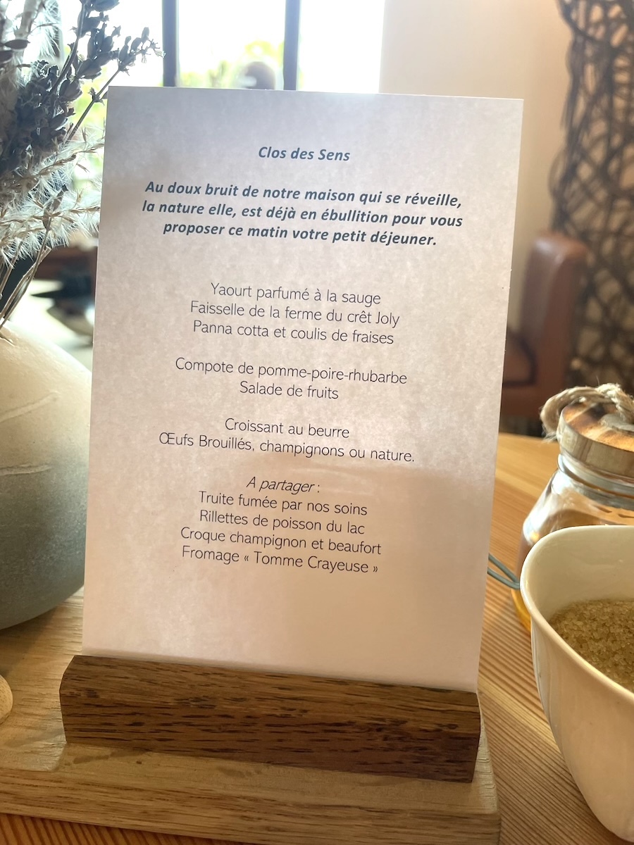 8時起床。朝ごはんがめちゃ楽しみ!ダイニングに降りていくと昨夜とはまた違った朝食用の部屋に案内された。朝食メニューが置いてあり飲み物を聞かれたのでカフェオレをお願いする。