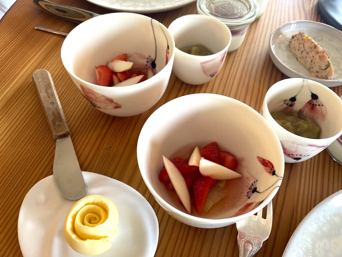フルーツサラダとりんご&洋梨&ルバーブのコンポート。