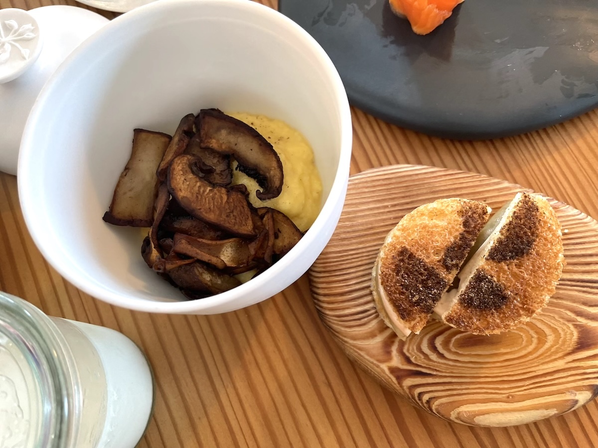 きのこのスクランブルエッグときのことチーズの小さなクロック。