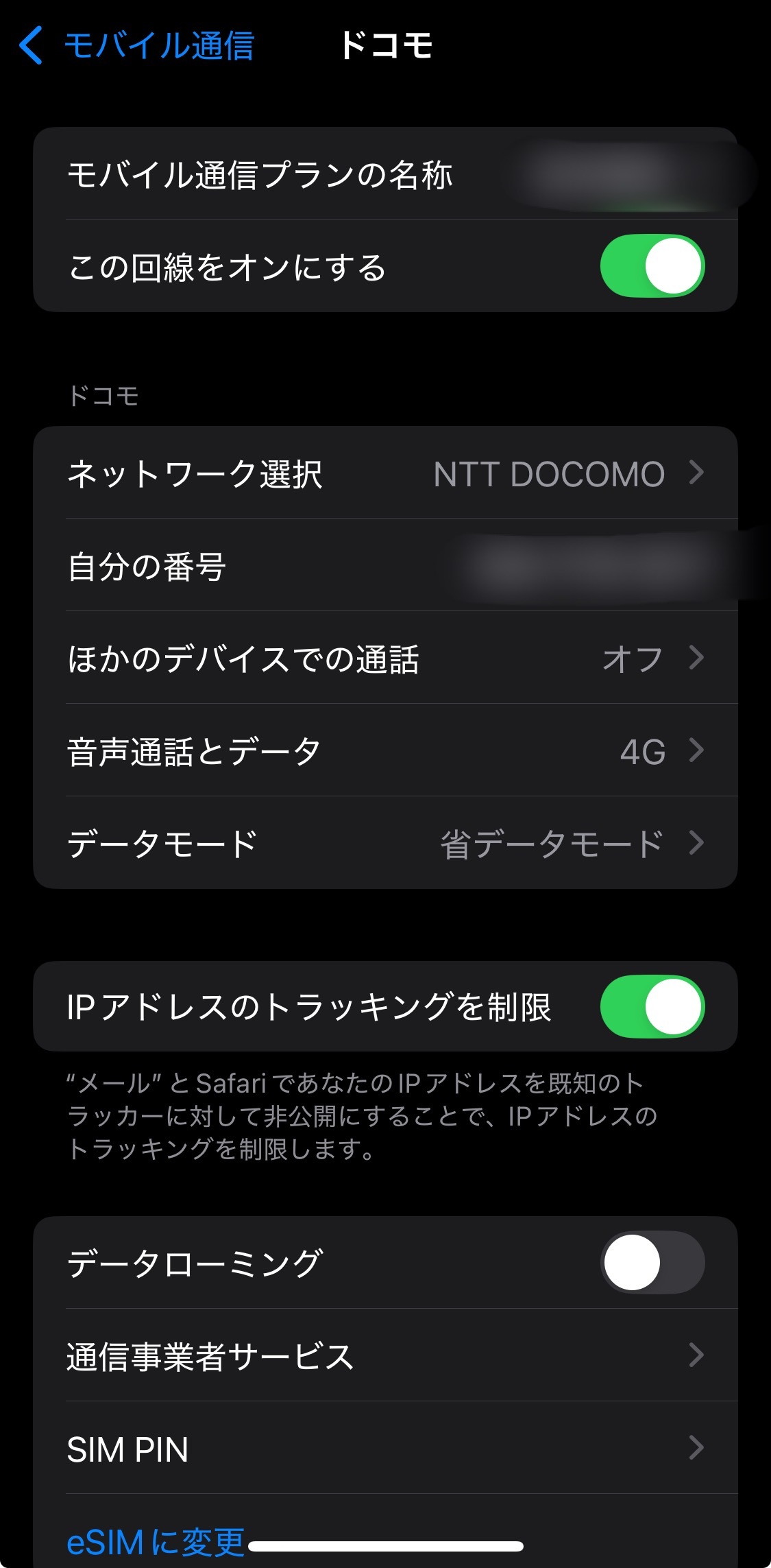 インストールしたeSIMは日本にいる間はOFFにしておいて現地に着いたら「この回線をONにする」で自動でアクティベーション(有効化)される。(この画像は日本のSIMだけど)