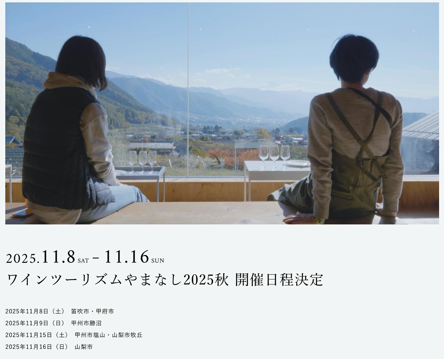 秋のビッグイベント「ワインツーリズムやまなし2025秋」の開催日が告知されました。