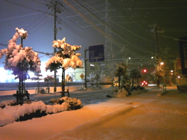 思ったより積もりましね。今年一番の積雪です。明日の朝は雪かきだ!