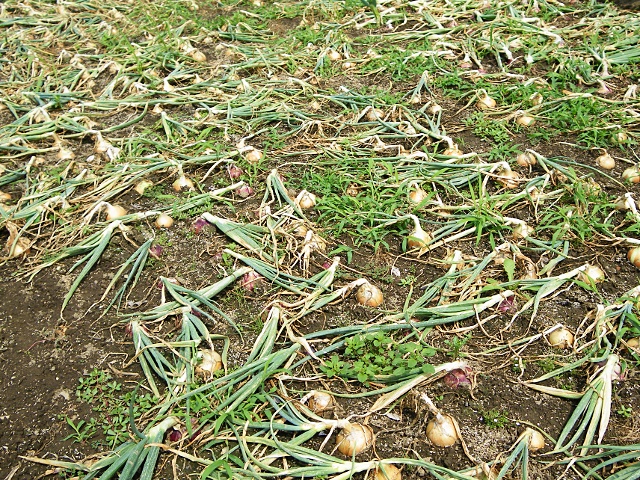 たまねぎはすっかり葉が倒れてあとは一気に収穫するだけです。