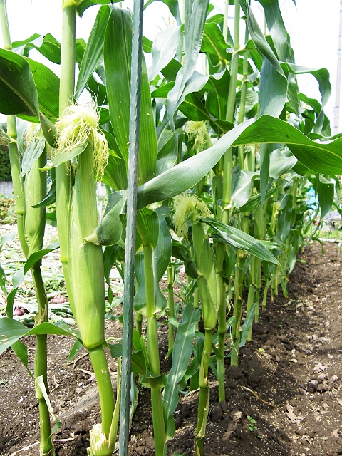 一番最初に植えたとうもろこしはもうこの大きさです。もうすこし太ったらいよいよ収穫です。