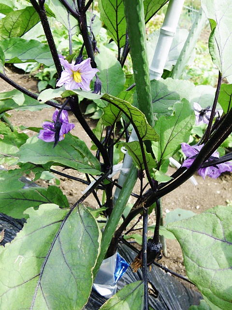こっちはなすの花です。そろそろ実もなり始めています。ざくざくと採れはじめるのが楽しみです。