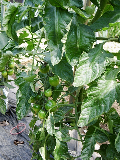 プチトマトの実が付き始めています。もう少ししたら赤く熟れてくるかな?来月のメニューにはそろそろ使えそうです。