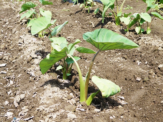 秋に向けて里芋も植え付けました。キメの細かい里芋を使ったお料理は毎年人気なんですよ。