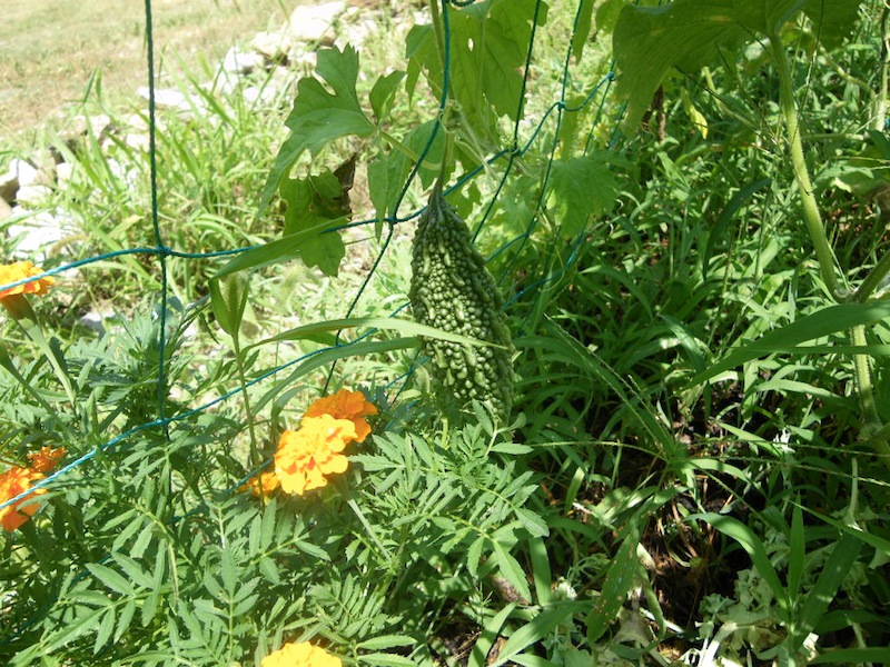 ゴーヤーも株は結構伸びているのにあんまり雌花が着かなくて実の数は少ないですが美味しい実が出来て来ています。雌花と雄花のバランスは肥料のバランスでしょうかね?ズッキーニは逆に最近雄花があまり咲かなくて困っているのです。