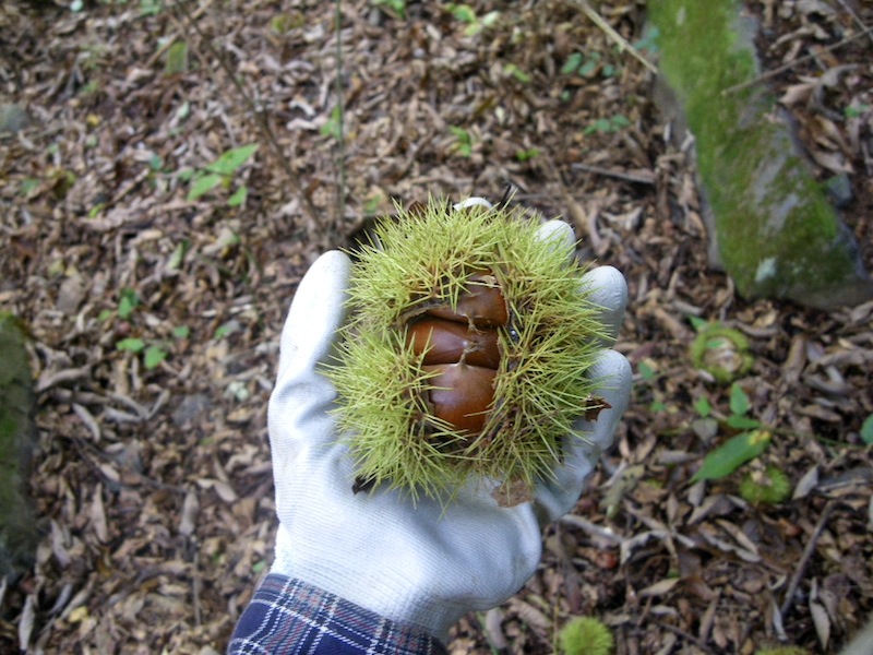 この時期山を歩いていると栗の実が良く落ちています。ただ小さいのが多いので時々大きな実を付けている木を見つけたら拾ってくるんですよ。