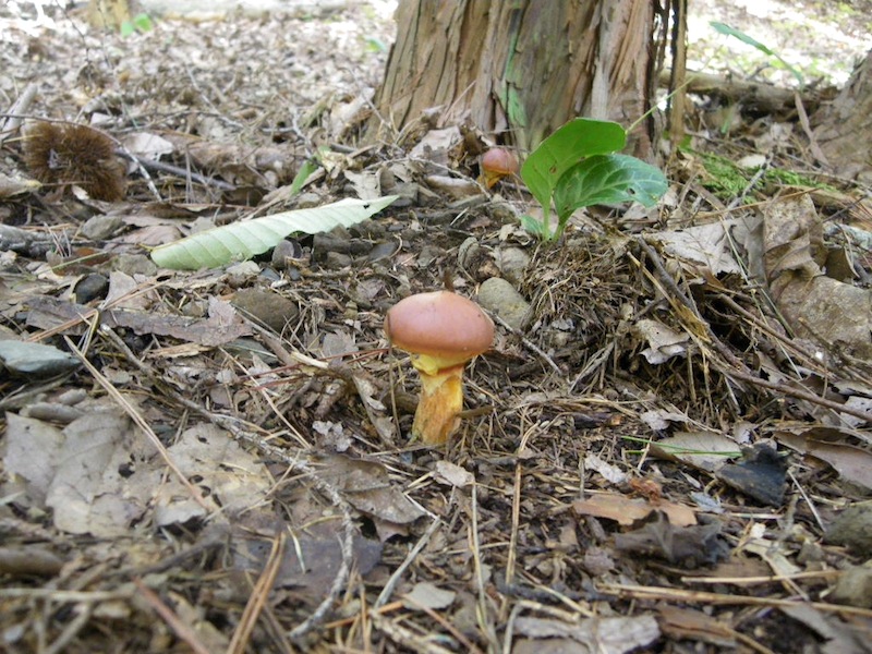 ハナイグチ。やっとやっと、ハナイグチが出始めました。赤い色をしていて見つけやすい、つるりとした食感のきのこ。