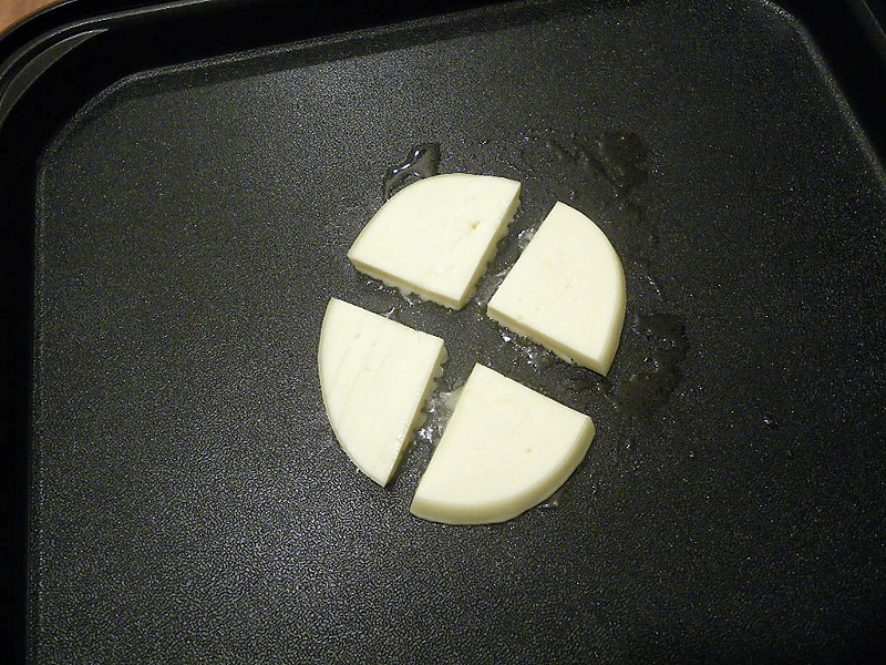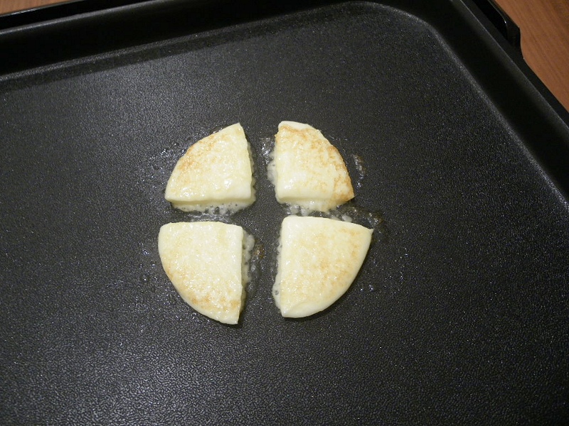 1cmくらいにスライスして適当な大きさに切りました。ホットプレートを温めて油を引かずに並べます。