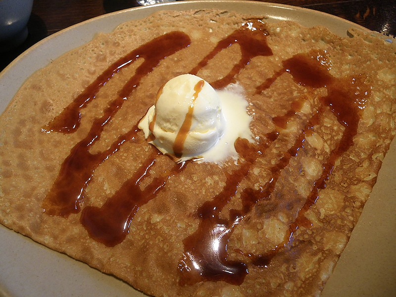 クレープはキャラメルブールサレのクレープを選びました。ブルターニュらしい超定番の組み合わせ。間違いなく美味しい!フランス全土ではバターと言えば基本「無塩バター」なのですが、ブルターニュ地方は乳製品の一大産地、そしてゲランドの塩を初めとした塩の名産地でもありこの地方は有塩バターの方が普通なのです。ちょっと前にはこの有塩バターを使ったキャラメルサレ(塩キャラメル)やクイニーアマンなどの甘塩っぱスイーツも流行りましたよね。