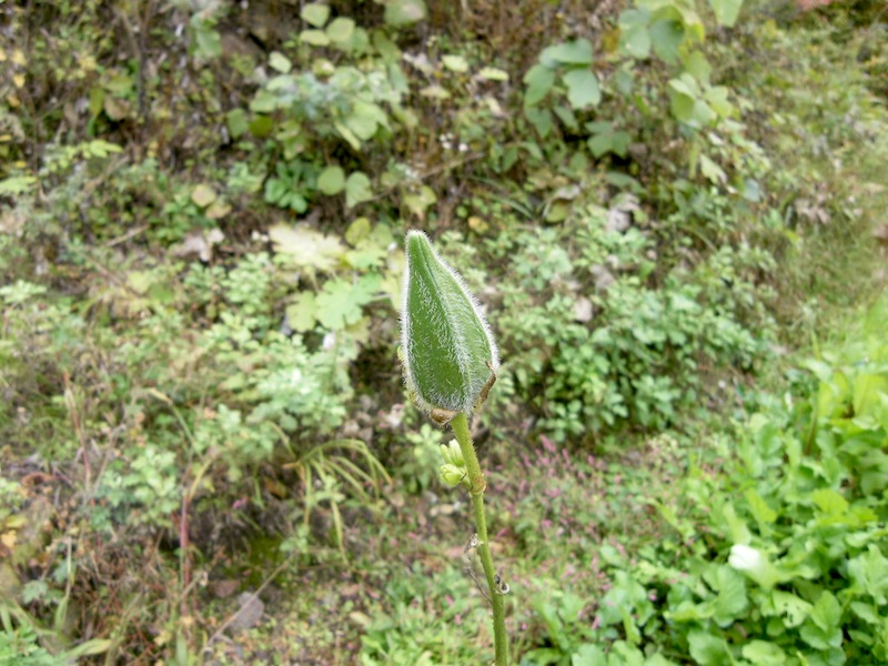花おくらの実もゆっくり大きくなってきました。本格的に寒くなる前に種ができるだろうか…?
