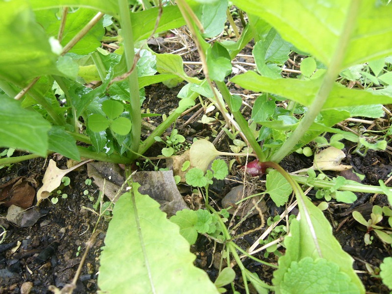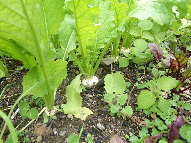 カブ、大根畝です。ちょっと混みすぎかな?そろそろ間引きを兼ねて収穫をしたいところ。