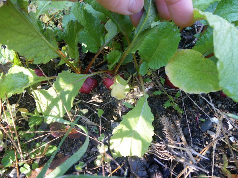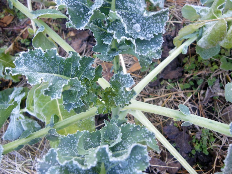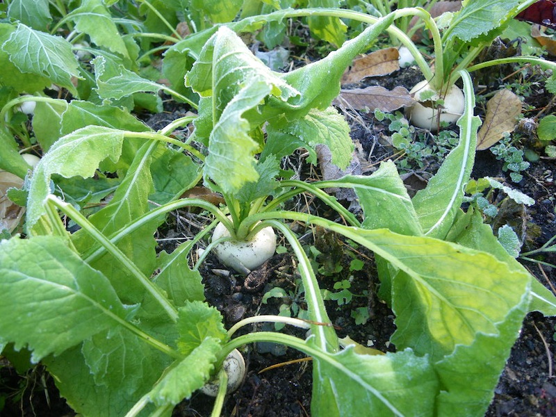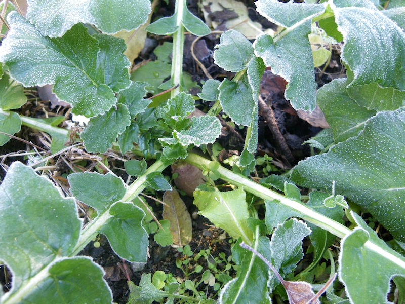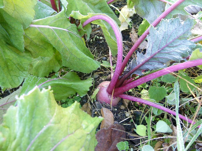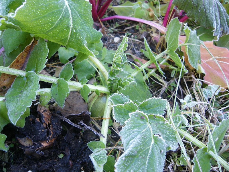自家菜園レポート 自家菜園 2012.11.28 いよいよ寒くなってきましたね!エリソンの自家菜園もすっかり冬の気配で、日によっては霜がパリパリに降りています。山あいで朝日が当たるのが遅いため、それほど早朝の風景という訳でもないのですが霜がなかなか溶けないのですよね。 そろそろトンネルを掛けてあげないとこれ以上大きくならないかも… 白かぶ。大きくなったものから順番に収穫。 赤かぶ。生で食べると甘くてシャキシャキ。 中国大根。もうちょっと大きくなれ! 紅芯大根。これももうちょっとだなぁ。 ラディッシュ。そろそろ採ってしまわないと凍みそう。 ちりめんきゃべつ。ちょっと巻いてきた!早くトンネル掛けなきゃ。 カリフラワー。葉っぱの中に花芽はあるかな? ブロッコリー。小さい花芽が付いた! スティックセニョール。これも花芽が付きました。 リーフレタス。陽が当たれば解凍されていくのです。 そういえば、落花生。時々抜いてみても実が大きくならないので無かった事になりかけてたのですがふと見ると一応大きくなってる! 収穫〜!なんでこんなに時間がかかるのだ?