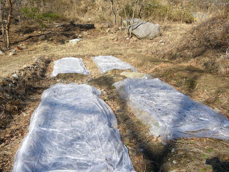 そして菜園の方には水菜やからし菜ルッコラなどの葉物とカブとラディッシュの種を蒔きました。夏野菜の苗を植える5月半ば頃までベビーリーフとして収穫して使う予定。早く発芽して大きくなるように不織布と透明ビニールで二重の防寒。まだ周辺の草も萌えてこないですからね〜春本番までもう少し☆
