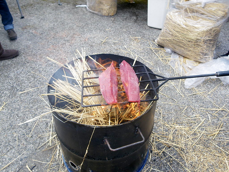 大阪の酒飯卸「小松屋」さんと、高知のいけす料理店「やなけん」さんチームは獲れたて鰹を遠く高知から直送して鰹のたたきの実演です!