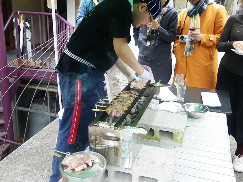 もう一軒の出展は東京の焼き鳥屋さん「焼鳥かなめ」さんです。お店では国産ワインもラインアップしワイナリーや酒蔵とのイベントも行っているそうです。炭火を起こし何種類かの串を焼いてくれていました。いくつか頂きましたがちょうど良い火通りジューシーさですごく美味しかったです〜