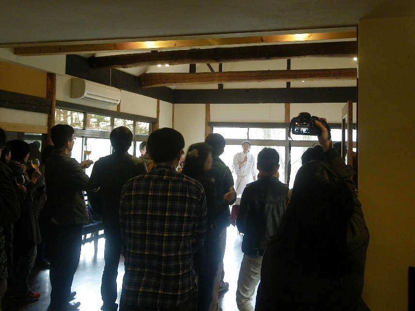 昨日、エリソンにて山梨市牧丘町にある四恩醸造の新しいワインの発売に合わせたリリースパーティが開催されました。お食事を二回に分けてお客様の人数は合計約100名というビッグイベントです。心配していた雨にもほとんど降られず盛りの桜やスモモ、走りの桃に彩られた素敵なパーティーとなりました。