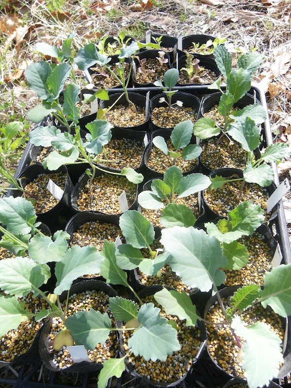 三月から育てている苗がそこそこ大きくなったので定植しました。ブロッコリー、スティックセニョール、カリフラワー、ちりめんキャベツコールラビ、リーフレタスです。