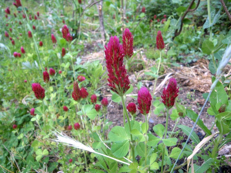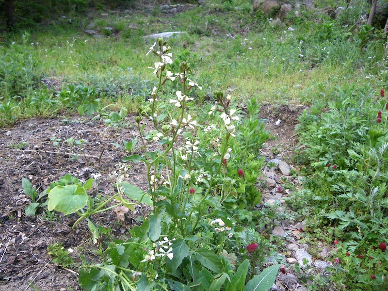 エリソンの自家菜園は有機肥料無農薬栽培を行っています。基本的に土を耕さない不耕起栽培、草を生やす草生栽培なので、春はいろいろな花も咲いています。これは去年蒔いたルッコラの花ですね〜