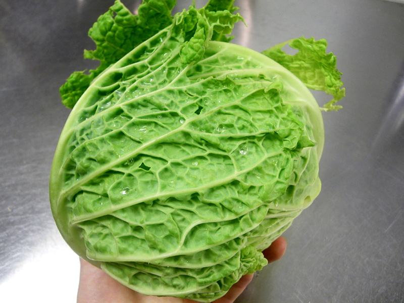 サボイキャベツ。ちりめんキャベツとも言いフランスではよく用いられているキャベツです。名前の由来もフランスのサボワ地方のキャベツと言う意味からだそうです。生で食べるより火を入れて煮込んだりすると甘みがでます。
