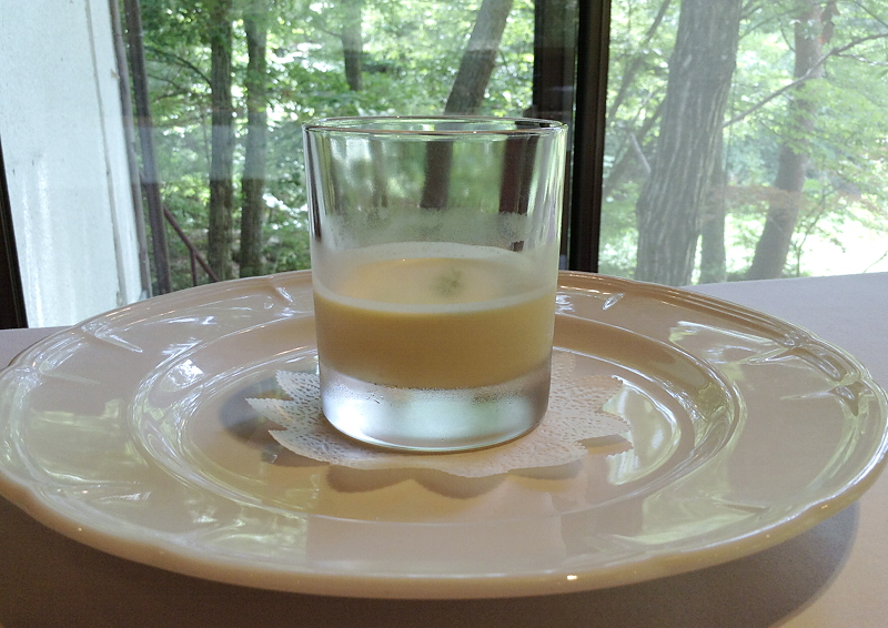 冷製スープ始めました 料理 2013.07.14 昨日までのびっくりするような暑さは一段落したものの夏らしい日が続きます。 エリソンでご用意しているスープも今週から夏らしい冷製スープになりました。朝獲れの甘〜い地元産とうもろこし使っています。暑い夏をひんやりとした元気の出るスープで乗り切りましょう!