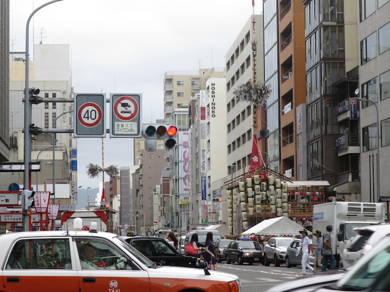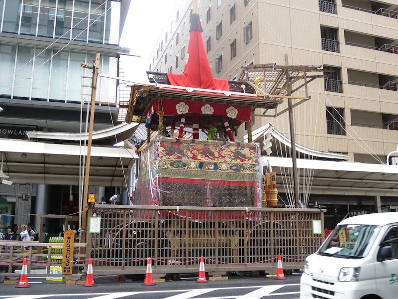 この日は京都の夏が一番盛り上がる祇園祭の宵山の日!街にはコンチキチンと祭り囃子が流れ徐々に盛り上がって来ています。街角では夕方から始まる宵山に備え鉾や山を準備していました。
