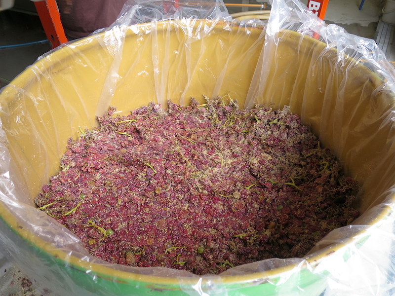 あいにくの雨模様でしたが今日の分のデラウェアの収穫は素早く終わったみたいでお昼過ぎにはプレスが終わっていました。搾りかすも取り出してプレス機洗浄中です。いつもは搾りかすは畑にまきに行くのですが今日は違います。搾りかすにぬかを混ぜて…