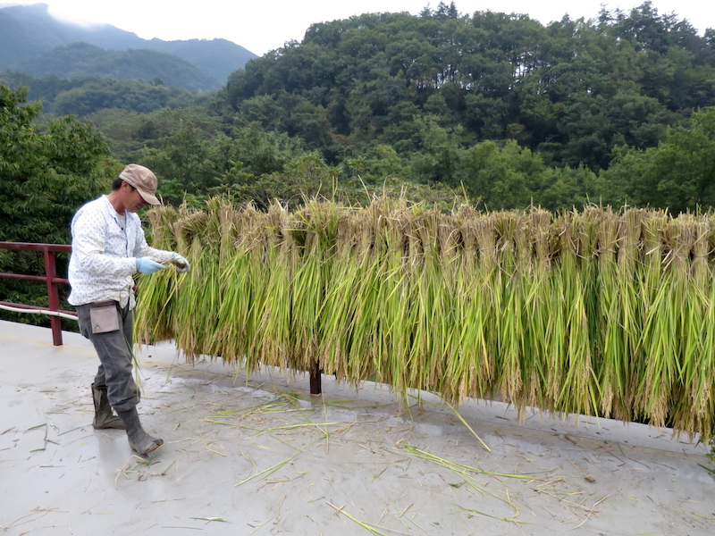 しばしこの場所でお米を天日干しにします。日本の秋って感じで嬉しくなる風景ですよね。