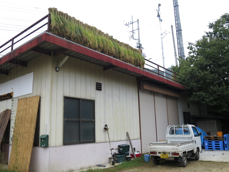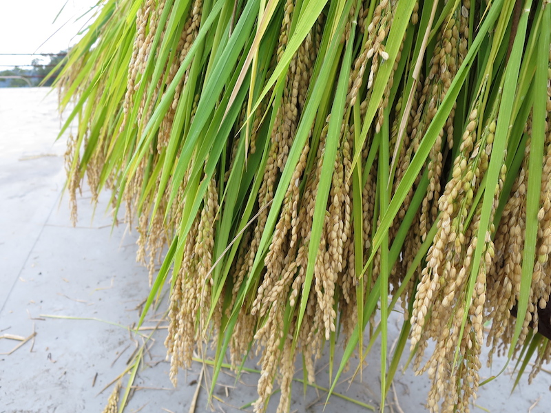 今日はブドウではなくお米を収穫してたのでした!小山田さんはブドウ栽培の傍ら自家用にお米や野菜も栽培してるんです。今日の午後は雨の予報の前だったので降る前に収穫できてよかった。