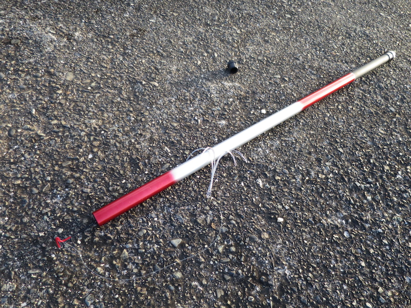 今回がデビュー戦となる手作りの鴨キャッチャー的な物。1、800円ぐらいで買った4.5mののべ竿に短めのテグスを結び、針金を曲げて作ったフックを取り付けました。