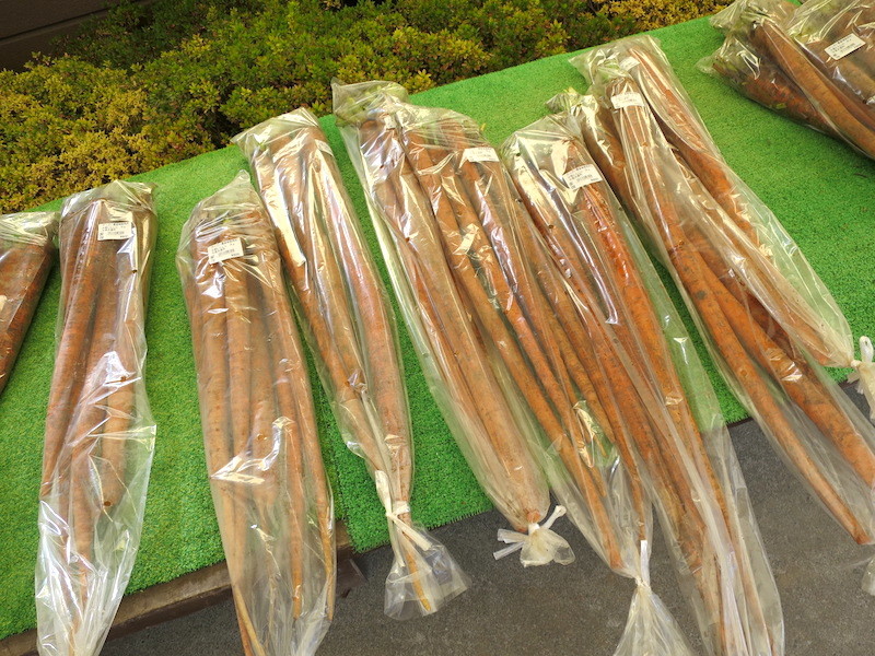 ごぼうのように長ーい人参!古くからこの地域で栽培されている品種でぎゅっと締まった肉質、人参らしい強い香り、魅力のある食材です。持って帰って土に埋めておくと保存も出来るので数袋購入しました。