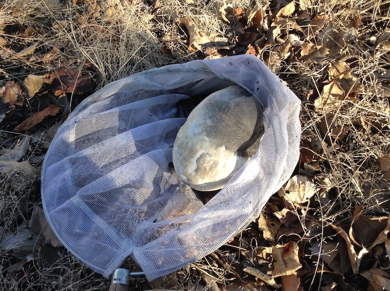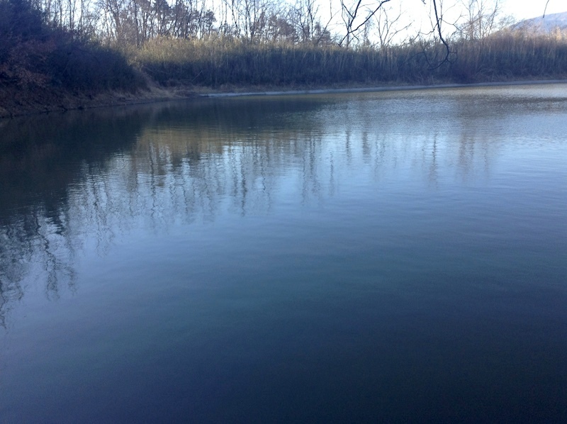 そろそろ終わりの時間が近づいたころ一羽の鴨を撃ちました。この写真に写っているんですがわかりますかね〜?中央の草むらの左下のあたりの小さな白い点です。撃った場所がちょっと微妙で回収に難儀しそう。最初風が吹いていたので寄ってくるかと思ったのですが風向きが変わり難しい。向こう岸に回りフックを付けた釣り竿を使ったり、水を煽ったりしたのですが薮に引っかかってにっちもさっちも行かず…。