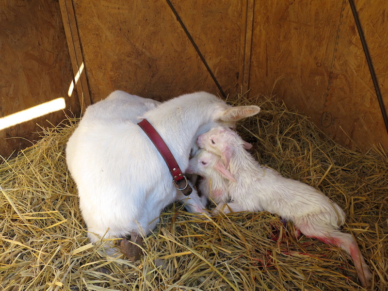 ほぼ予定通りの日程でマドレーヌが今日の午後二頭の子ヤギを産みました!!